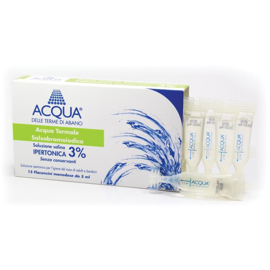 Acqua Terme Abano Soluzione Ipertonica 3% 15 Flaconcini – Acqua Termale di Abano Terme per Aerosol e Inalazioni Nasali