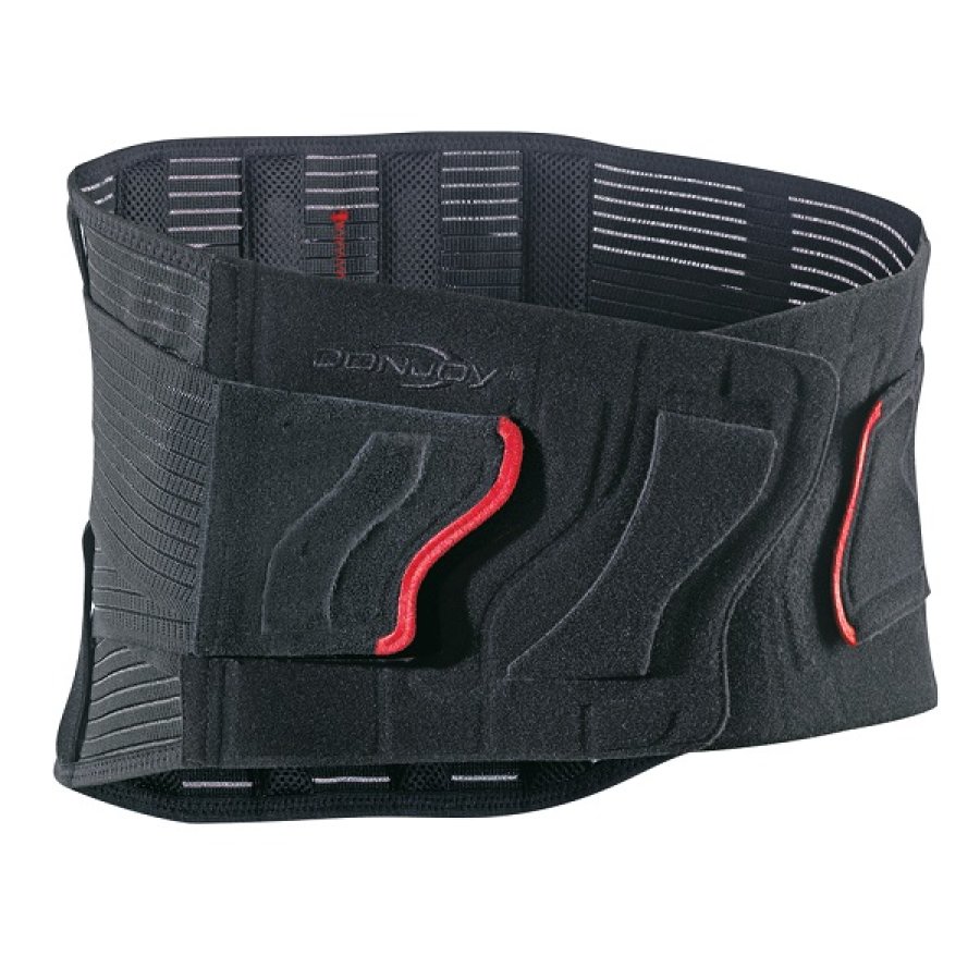 Corsetto elastico con doppi tiranti per compressione lombare forte.