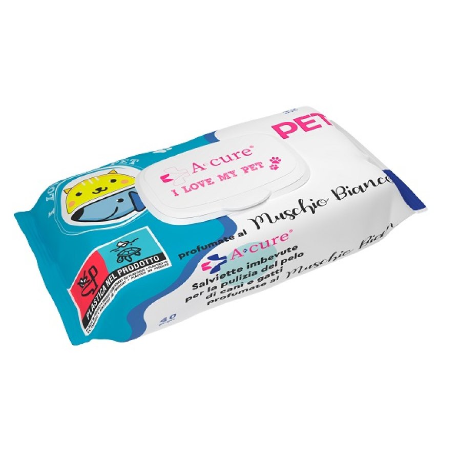 Salviette che detergono e lucidano quotidianamente il pelo di cani, gatti e animali domestici. Sono utili a casa, in auto, per passeggiate all'aperto e quando piove per deodorare, grazie alla delicata profumazione di Muschio Bianco, e rinfrescare l'animale. Non occorre né sciaquare né asciugare.
