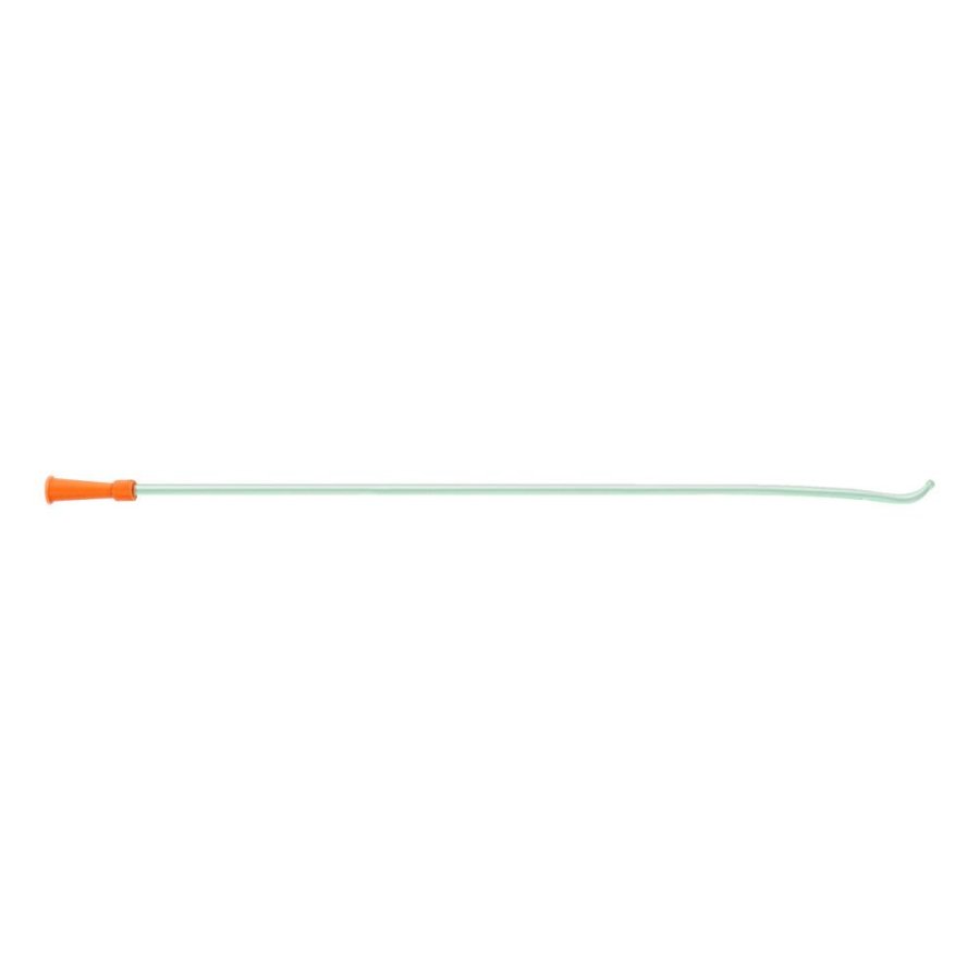 Catetere monouso per il cateterismo intermittente. Quest'ultimo é un metodo terapeutico che permette il drenaggio vescicale in caso di ritenzione urinaria parziale o totale. Il catetere raggiunge la vescica mediante l'attraversamento dell'uretra. Il particolare trattamento della superficie esterna e la punta piena dolcemente arrotondata, garantiscono la massima protezione dei tessuti sensibili deiPuretra. Il particolare disegno dei fori laterali, con bordi svasati, permette un'introduzione ed un drenaggio atraumatici.Formato