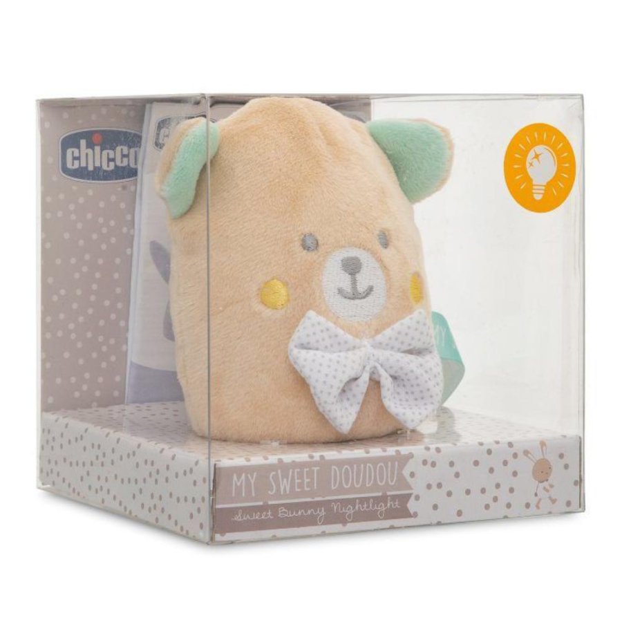 Luce notturna a forma di orsetto. Si illumina e tiene compagnia al bambino durante la notte.