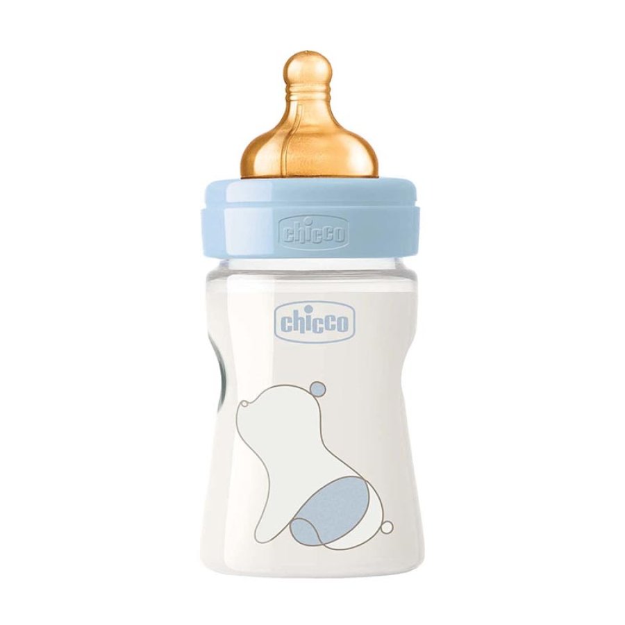 Chicco Artsana Biberon Original Touch 1 Flusso Lento Bottiglia Vetro Tettarella Caucciù Blu 150 ml