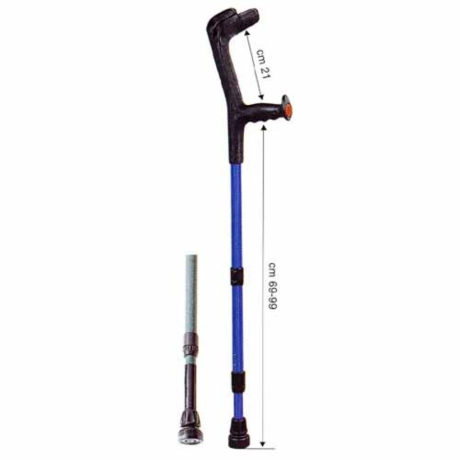 bastone canadese per adulti a doppia regolazione. Prodotto in alluminio anodizzato. Impugnatura anatomica antiscivolo. Disponibile con e senza ammortizzatore. Portata massima 130 Kg.