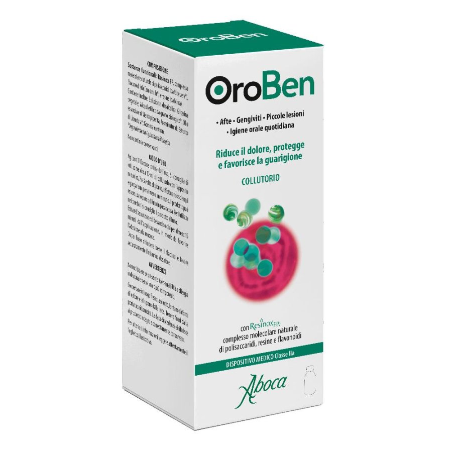 OroBen Collutorio agisce grazie a Resinox FP un complesso molecolare naturale frutto della Ricerca Aboca, composto da polisaccaridi, resine e flavonoidi che creano sulla mucosa una barriera attiva dalla duplice azione: