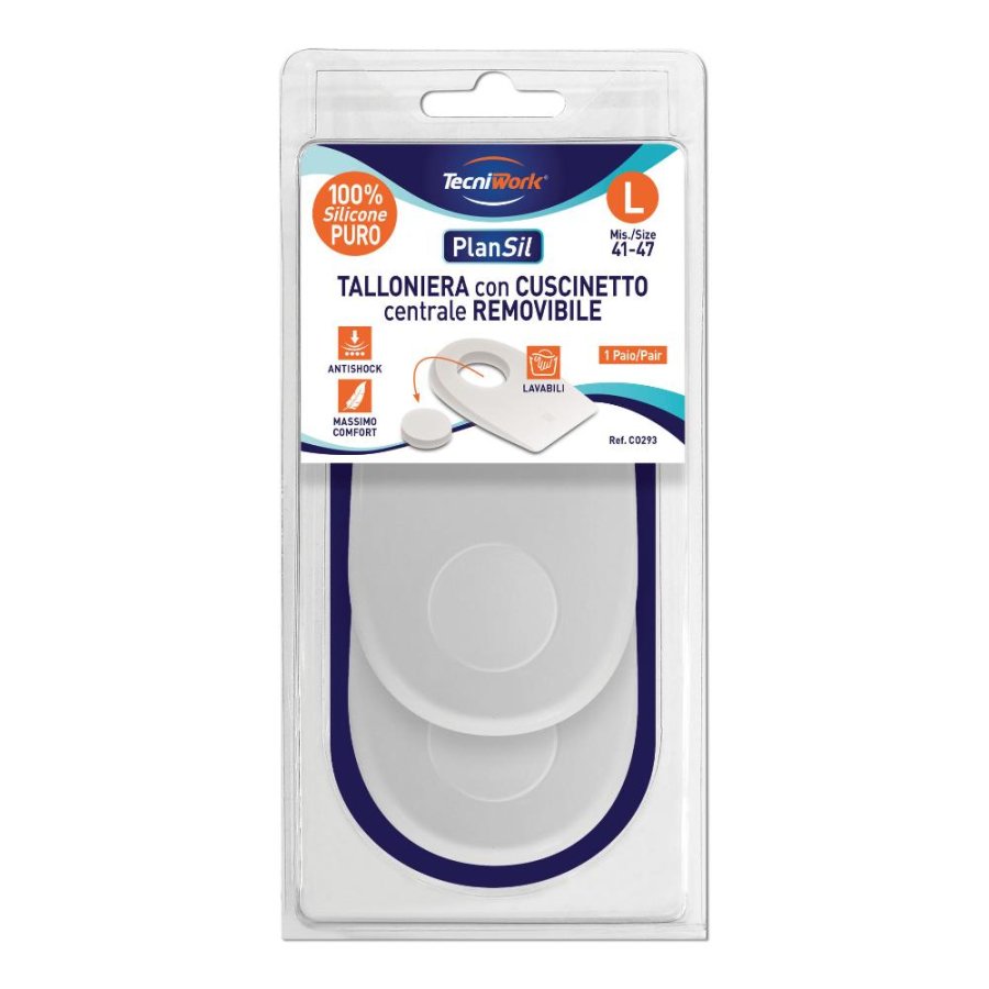 Talloniere in silicone con cuscinetto centrale removibile. Riducono i carichi a livello del tallone e grazie alla possibilità di estrarre il cuscinetto, sono adatte ad ogni esigenza.