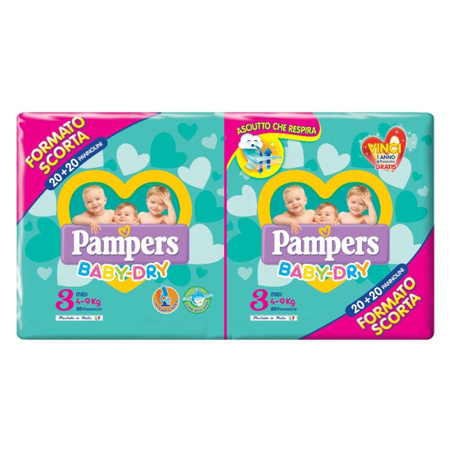 Pampers Baby Dry Midi, 40 Pannolini, Taglia 3 (4-9 kg).