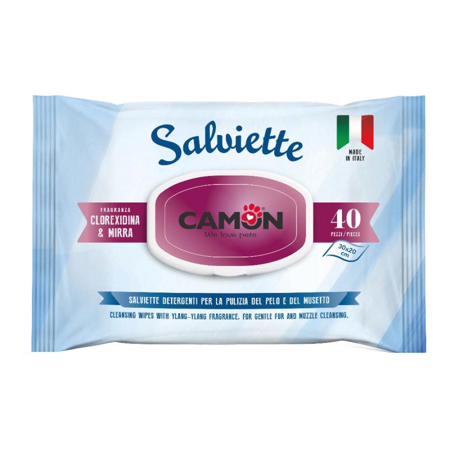 Salviette detergenti per l'animale domestico, da tenere sempre a portata di mano: a casa e in viaggio, per pulire il pelo e le zampe, togliere il cattivo odore,pulire il muso e le orecchie.