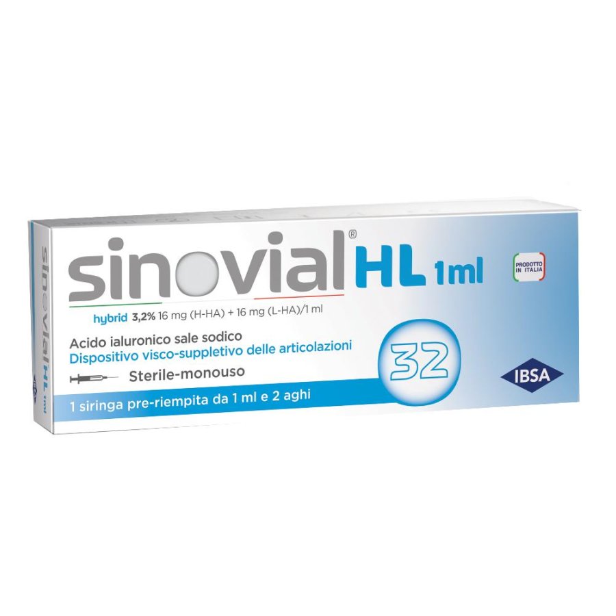 SINOVIAL HL 32 1 ml con la sua particolare formula, appartiene all’ultima generazione di trattamenti per l’osteoartrite ed è indicato in caso di dolori o mobilità ridotta dovuti ad affezioni degenerative (artrosi), posttraumatiche e tendinopatie associate a disabilità articolare.