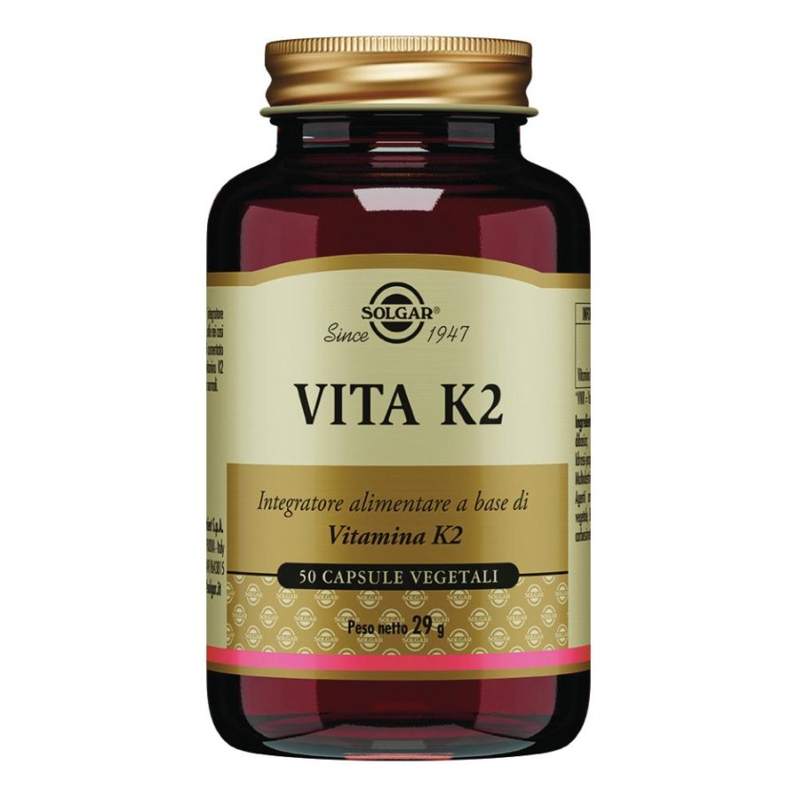 Scopri Solgar Vita K2, un integratore alimentare formulato con vitamina K2 derivata da natto, ricco in menachinone-7, per il mantenimento della salute ossea.