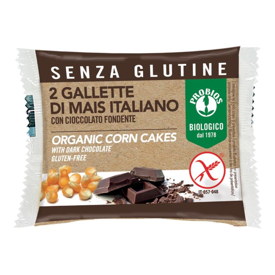 Gallette ricoperte di cioccolato, prodotte con mais italiano, sono garantite senzaglutine.