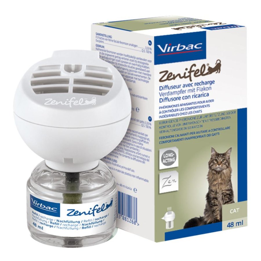 Diffusore di feromoni calmanti per aiutare a controllare comportamenti inappropriati dei gatti. I feromoni calmanti sono principalmente raccomandati per confortare i gatti che mostrano comportamenti inappropriati, come marcatura urinaria negli ambienti interni e graffiature eccessive causate da situazioni stressanti. Sono inoltre consigliati per aiutare i gatti da compagnia in caso di situazioni stressanti come i cambiamenti nel loro ambiente, i trasferimenti in una nuova casa, l'esposizione a forti rumori e eventi sociali. Il diffusore Zenifel utilizza una tecnologia del dispositivo a lunga durata che consente la diffusione del feromone per 6 settimane.