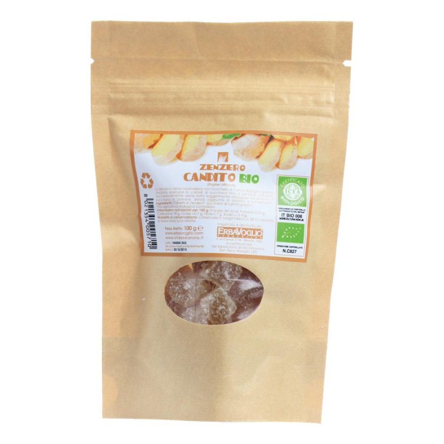 Zenzero caramellato con zucchero di canna biologico grezzo e poi lasciato essiccare in cristalli di zucchero fino a perdere collosità. Viene poi fatto leggermente asciugare ed avvolto in zucchero in polvere.