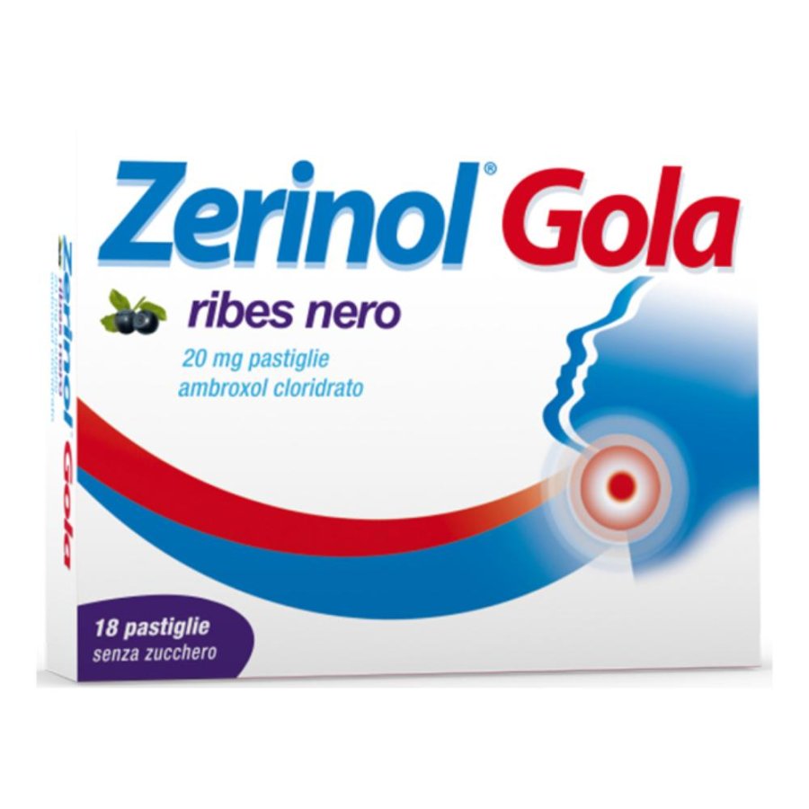 AvvertenzeSono stati segnalati casi di reazioni cutanee gravi quali eritema multiforme, sindrome di Stevens-Johnson (SJS)/necrolisi epidermica tossica (TEN) e pustolosi esantematica acuta generalizzata (AGEP) associati alla somministrazione di ambroxolo cloridrato. Se sono presenti sintomi o segni di rash cutaneo progressivo (talvolta associato a vesciche o lesioni della mucosa), il trattamento con ambroxolo cloridrato deve essere interrotto immediatamente e deve essere consultato un medico. Episodi di dispnea si possono verificare in un contesto di malattia latente come per esempio la gola gonfia. Anche reazioni allergiche locali (vedere paragrafo 4.8: angioedema) possono essere anche causa di dispnea. Le proprietà anestetiche locali di ambroxolo possono alterare la percezione sensoriale a livello dello spazio faringeo (vedere paragrafo 4.8: ipoestesia del cavo orale e della faringe).Zerinol Gola ribes nero 20 mg pastiglie non è adatto per il trattamento delle ulcere del cavo orale. In questi casi rivolgersi al medico. In caso di funzionalità renale compromessa o di grave epatopatia, Zerinol Gola ribes nero 20 mg pastiglie può essere utilizzato solo dopo aver consultato il medico. Come per ogni medicinale con metabolismo epatico seguito da eliminazione renale, in caso di insufficienza renale grave, può verificarsi l'accumulo di metaboliti di ambroxolo nel fegato. Questo medicinale contiene 8,3 g di sorbitolo per dose massima giornaliera raccomandata (1,381 g per pastiglia). I pazienti con rara condizione ereditaria di intolleranza al fruttosio non devono assumere questo medicinale. Popolazione pediatrica Zerinol Gola ribes nero 20 mg pastiglie non deve essere usato in bambini di età inferiore a 12 anni.